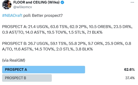 值得一提的是,他早些时候通过列举高阶数据设置了一个球迷投票(如上图),投票的结果也是杨瀚森获胜: