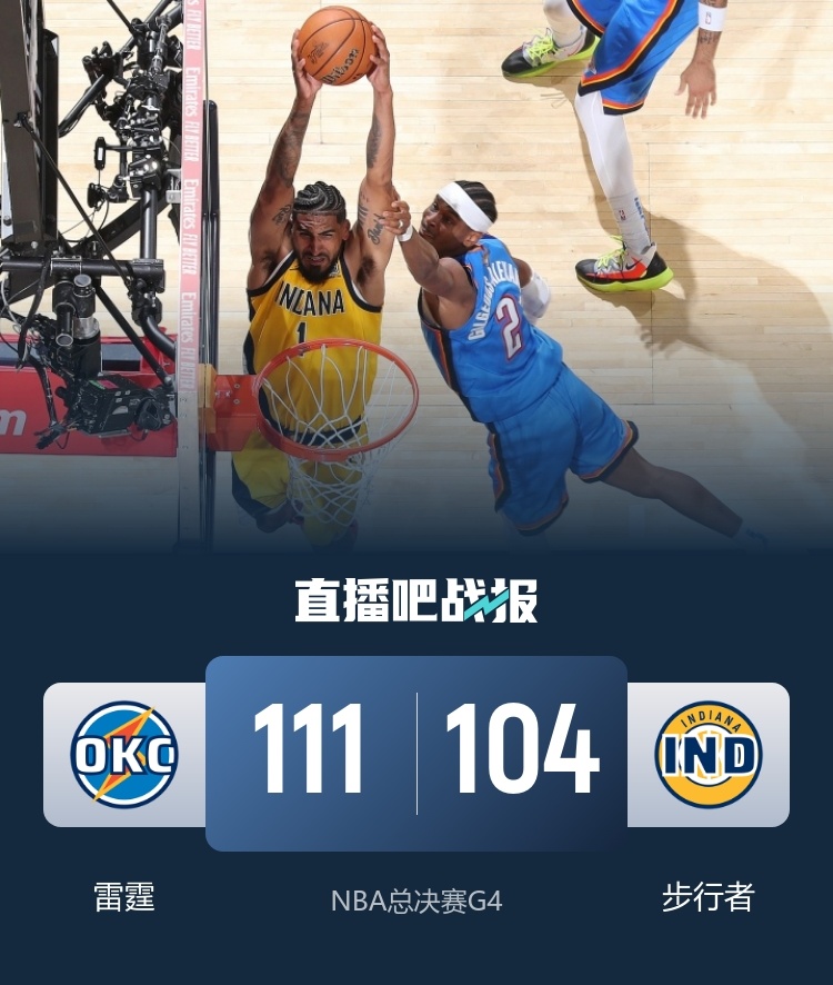雷霆(2-2):亚历山大35分3板3断、杰伦威27分7板3助、卡鲁索20分3板5断、霍姆格伦14分15板1助、多特6分2板、肯威4分3板1助、哈尔滕施泰因2分6板2助、华莱士2分3板2助、维金斯1分1助、乔1板