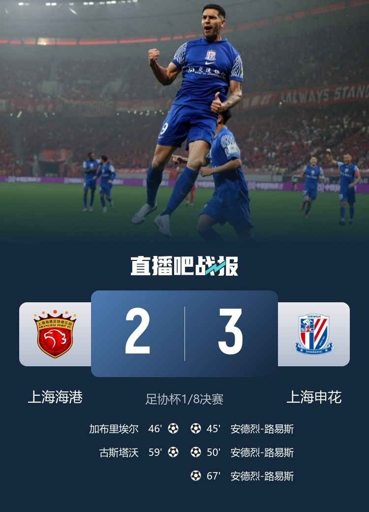 6月23日讯 足协杯1/8决赛“上海德比”,最终上海申花客场3-2击败上海海港,晋级足协杯八强。