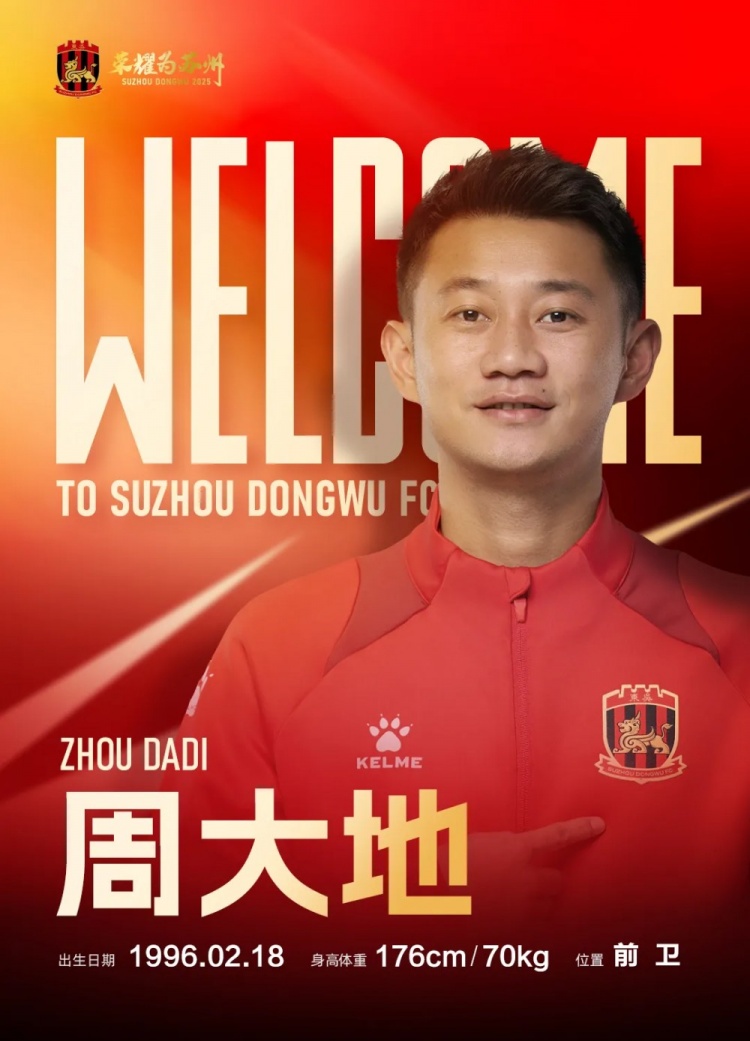 经友好协商并达成一致,球员周大地、迪力依米提-土地正式加盟苏州东吴足球俱乐部,为苏州而战!